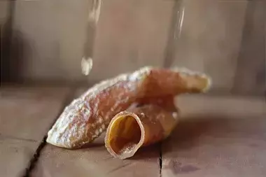 Ela é bem durinha se levarmos em conta o seu tamanho e é um petisco bem magro, faz bastante "crec" quando o doguinho está comendo, justamente por sua dureza não a recomendamos para gatinhos, já que daria bastante trabalho para conseguirem comer.