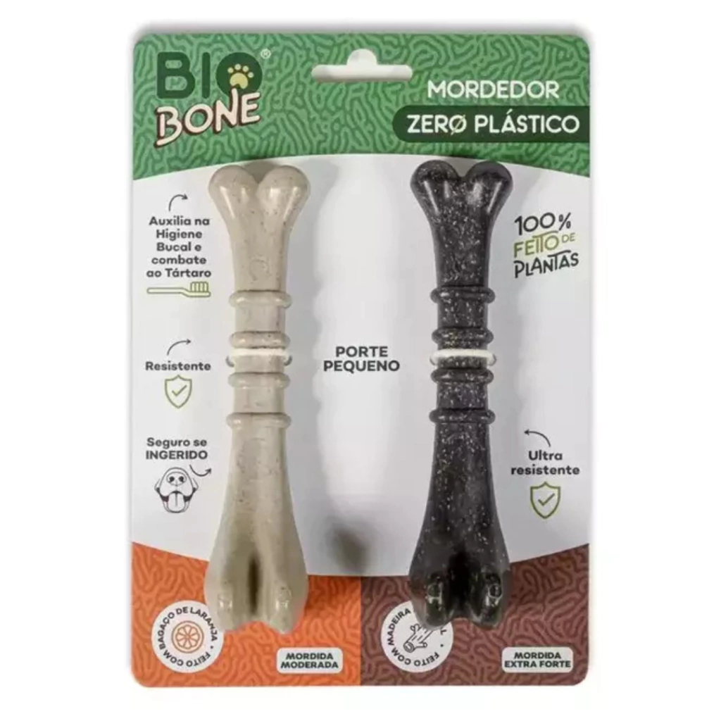 O Biobone tamanho pequeno é ideal para cães de porte pequeno e médio com mordida moderada. Feito com plantas, zero plástico e altíssima atratividade, ele é a opção mais segura e consciente para quem busca bem-estar e diversão na hora de roer.