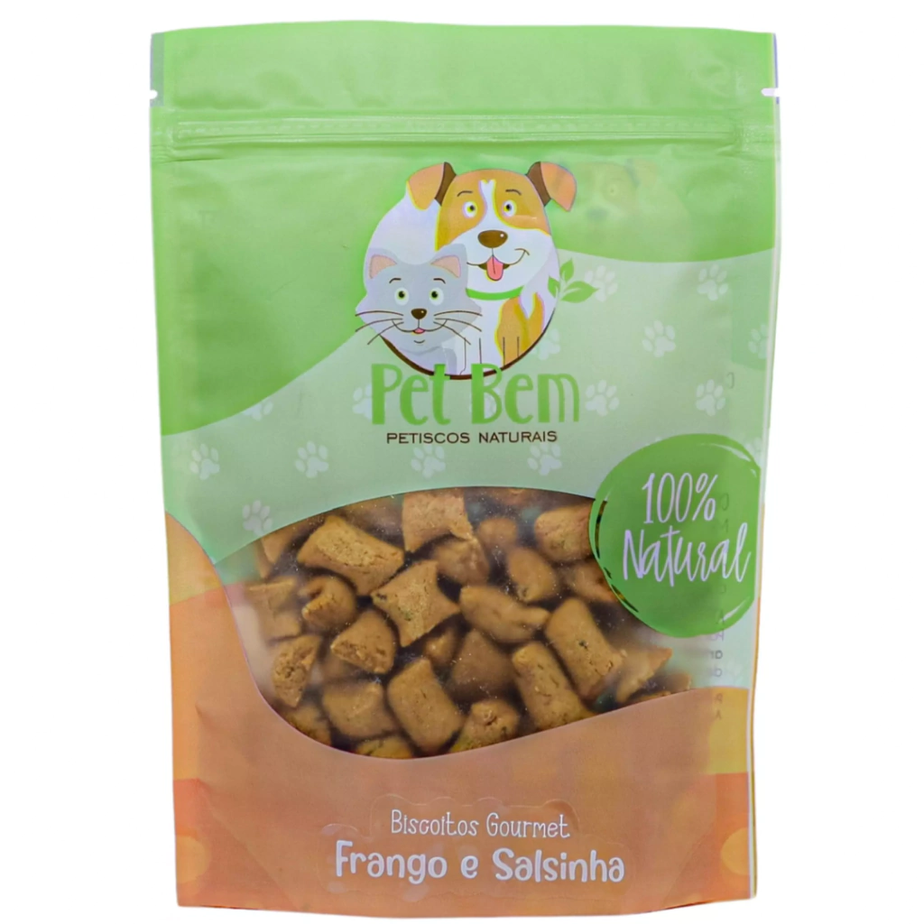 Feito com peito de frango, farinha de arroz, farinha de aveia, ovo, azeite de oliva e salsinha — sem glúten, conservantes, corantes ou aditivos artificiais.