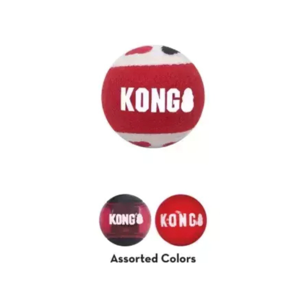 KONG Signature Balls são bolinhas ultra bonitas e com a cara da KONG desenvolvidas para cães de mordidas leves e moderadas e não destruidores. É um brinquedo extremamente durável, se usado adequadamente e destinada à cães não destruidores, para serem jogadas para brincadeiras intermináveis. São 4 modelos de bolas diferentes, algumas com e outras sem apito, para serem jogadas e satisfazer os instintos de caçar e trazer.