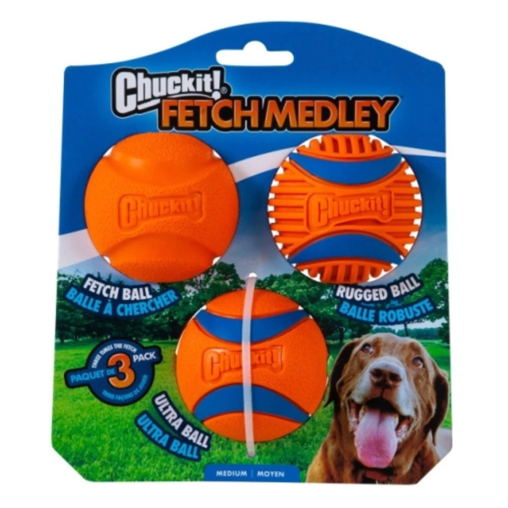 O Chuckit! Fetch Medley 3 é um kit completo com 3 bolinhas médias, cada uma com uma proposta diferente para agradar até os cães mais exigentes – e fortes!