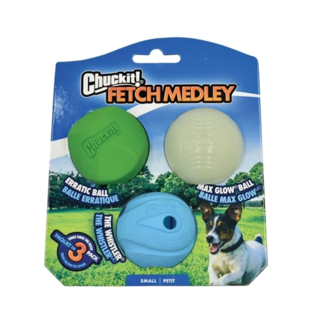 O Fetch Medley da Chuckit! é um trio de bolinhas especialmente selecionadas para transformar a hora da brincadeira em uma experiência completa de estímulo físico e mental.