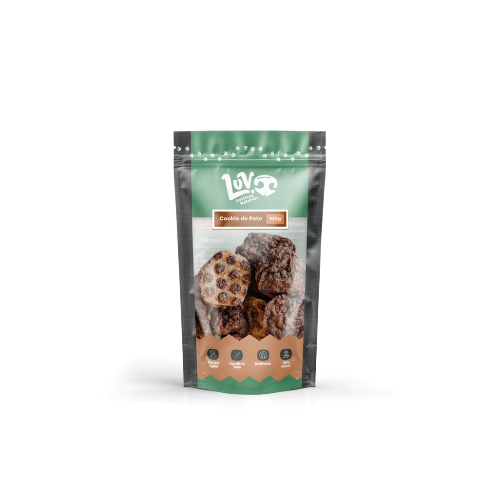 O Cookie de Pato é um petisco 100% natural, feito apenas com carne desidratada de pato — sem conservantes, aditivos ou ingredientes artificiais.