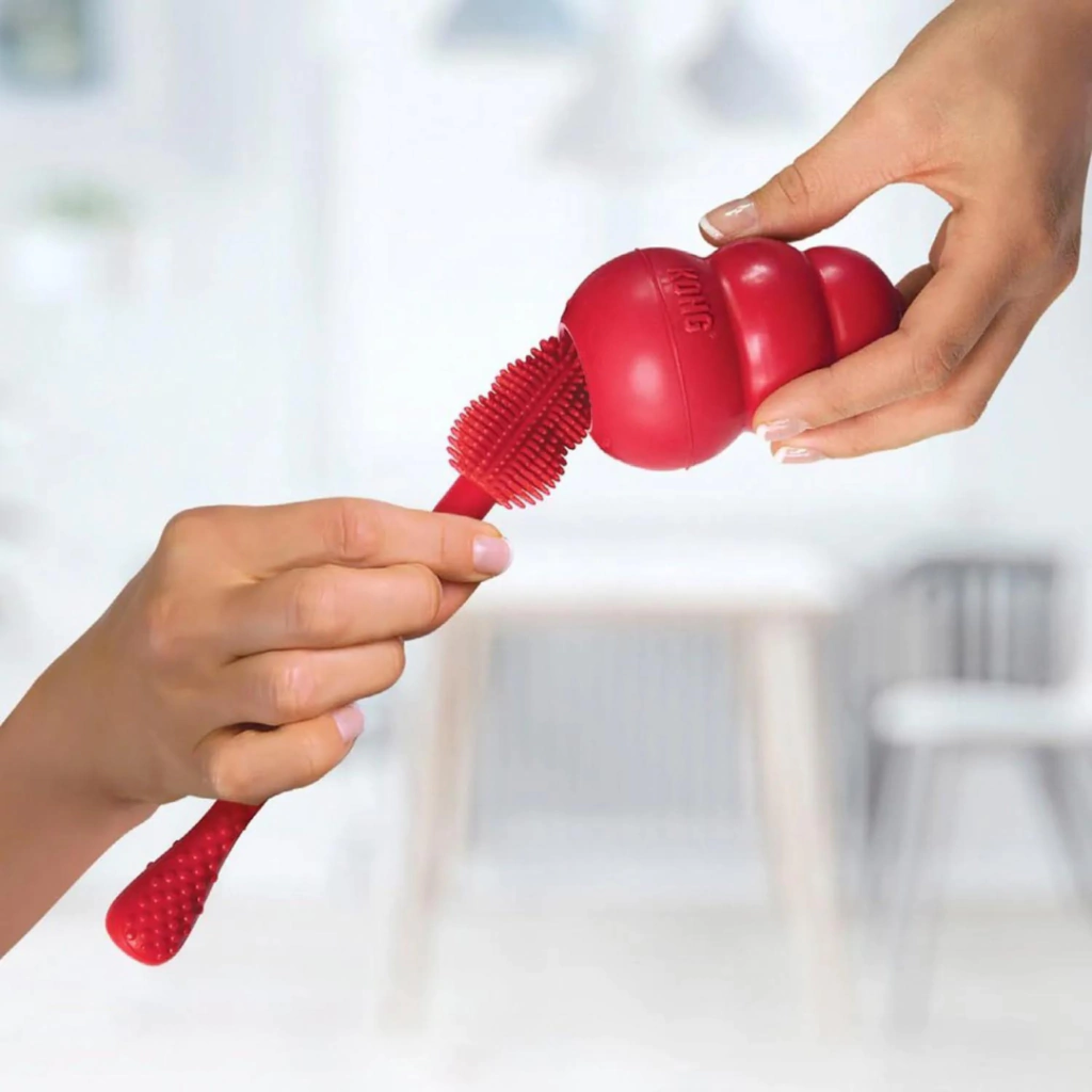 Escova de limpeza para facilitar a higienização do kong do seu cão.