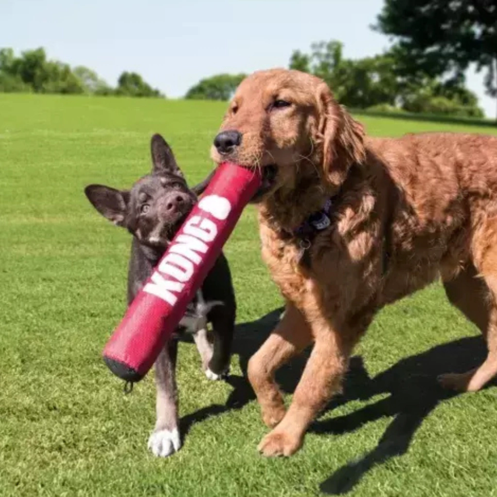 KONG Signature Stick é um brinquedo interativo que possui material reforçado, ideal para mordidas divertidas e brincadeiras de jogar e trazer. Possui apito e estalidos em seu corpo para tornar a diversão ainda mais estimulante. Seu corpo macio é gentil com gengivas e dentes. Ideal para treinamentos de buscar e trazer ou cabos de guerra. Destinado a brincadeiras interativas apenas. Flutua na água!