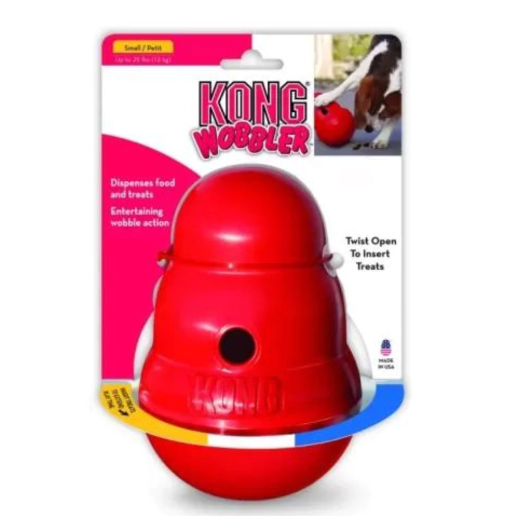 O Wobbler em forma de KONG é um brinquedo cheio de ação e distribuição de comida. Ele fica em pé até ser empurrado pela pata ou pelo nariz de um cão e, então, periodicamente distribui recompensas saborosas enquanto balança, gira e rola. O movimento imprevisível mantém o brinquedo desafiador, mesmo para usuários experientes de Wobbler. O Wobbler também pode ser usado como uma alternativa para uma tigela de cachorro para ajudar a diminuir e estender o horário das refeições enquanto fornece exercícios para seu cão. Desaparafusa para fácil enchimento e limpeza.