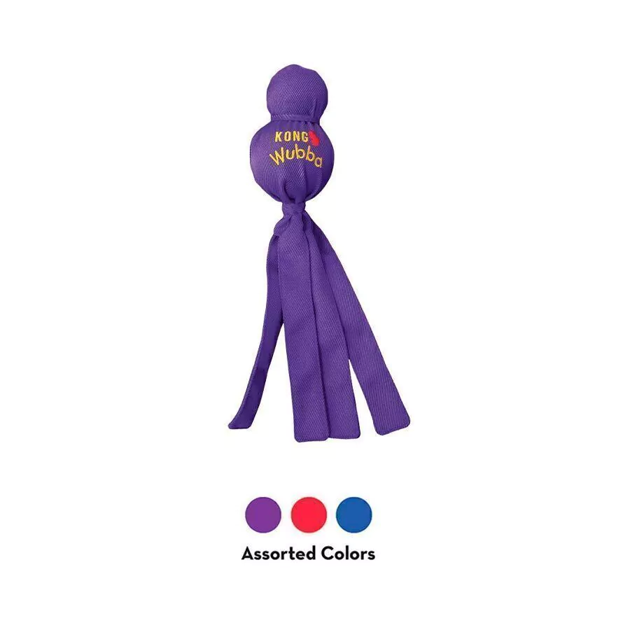 O KONG Wubba é um brinquedo interativo e super divertido para cães que adoram correr, puxar e chacoalhar. Ele combina duas bolas internas – uma de tênis em cima e outra com apito embaixo – tudo envolvido por um tecido de náilon ultra resistente. As caudas longas facilitam o arremesso e tornam o brinquedo ainda mais atrativo para os cães, que adoram sacudir de um lado para o outro.
