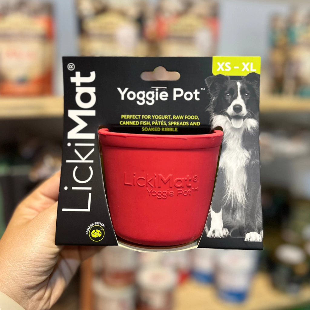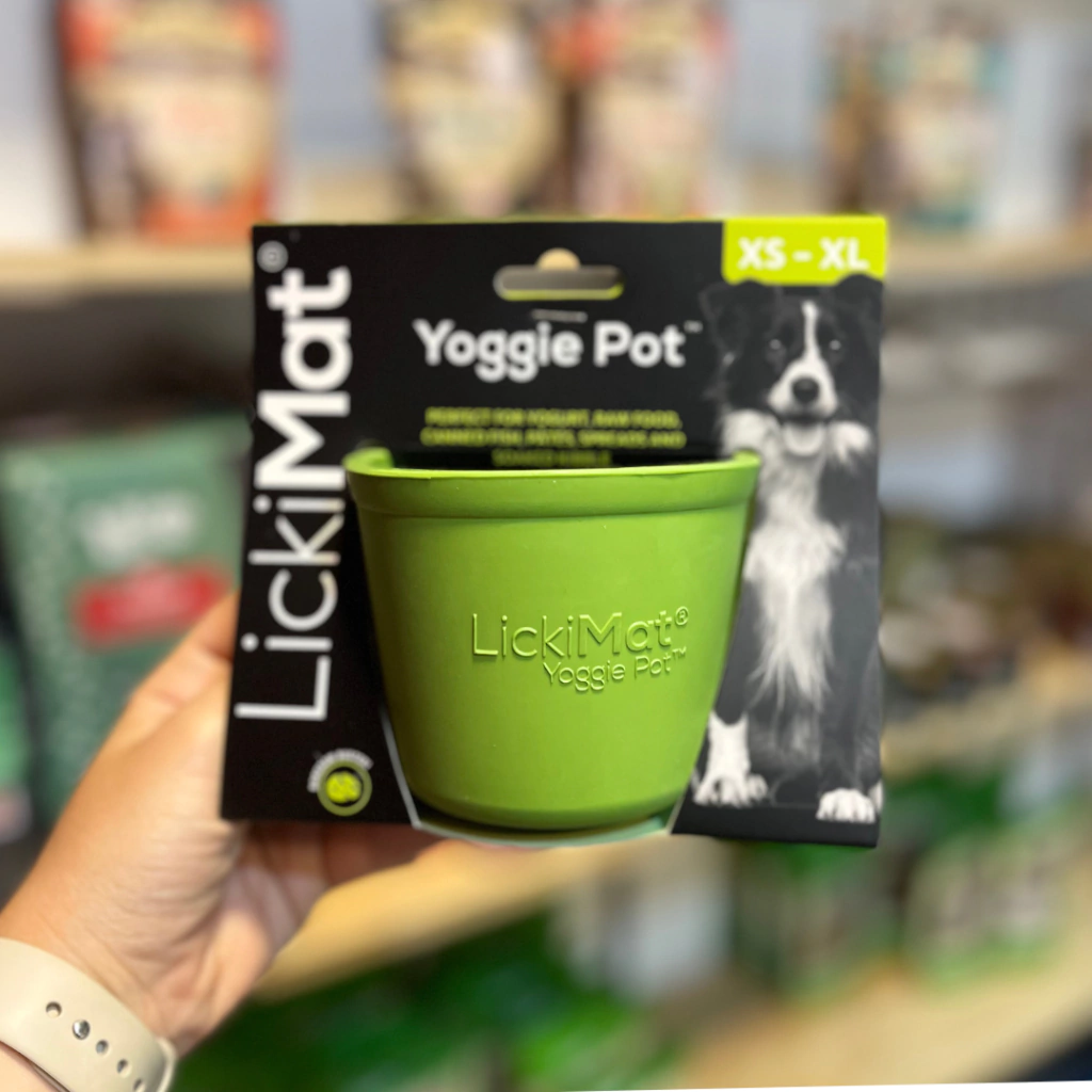 Desenvolvido para transformar momentos simples em experiências de bem-estar, o Yoggie Pot da LickiMat é uma forma prática e segura de oferecer estímulos positivos à rotina do seu cão.