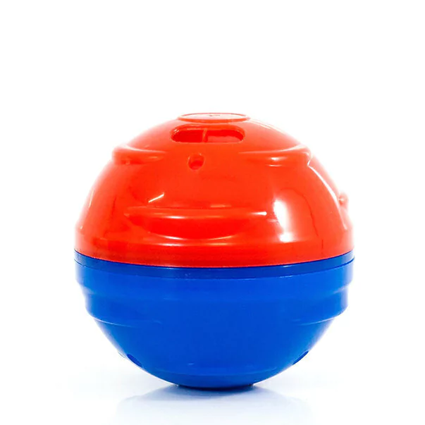 Comedouro-brinquedo em forma de bola com 4 aberturas ajustáveis.