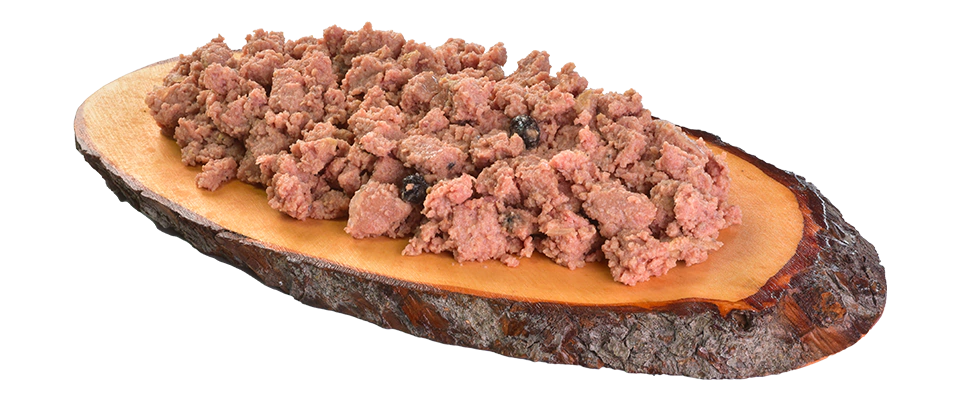 Carne e miúdos de Peru (63%); Carne de Avestruz (22%); amoras; amido de ervilha; lignocelulose; óleo de linhaça; vitamina D3; vitamina E; biotina; taurina; zinco aminoácido quelato; manganês aminoácido quelato; ferro aminoácido quelato, cobre aminoácido quelato; iodeto de potássio, goma de alfarroba, tocoferóis de óleo vegetal; extrato de alecrim.